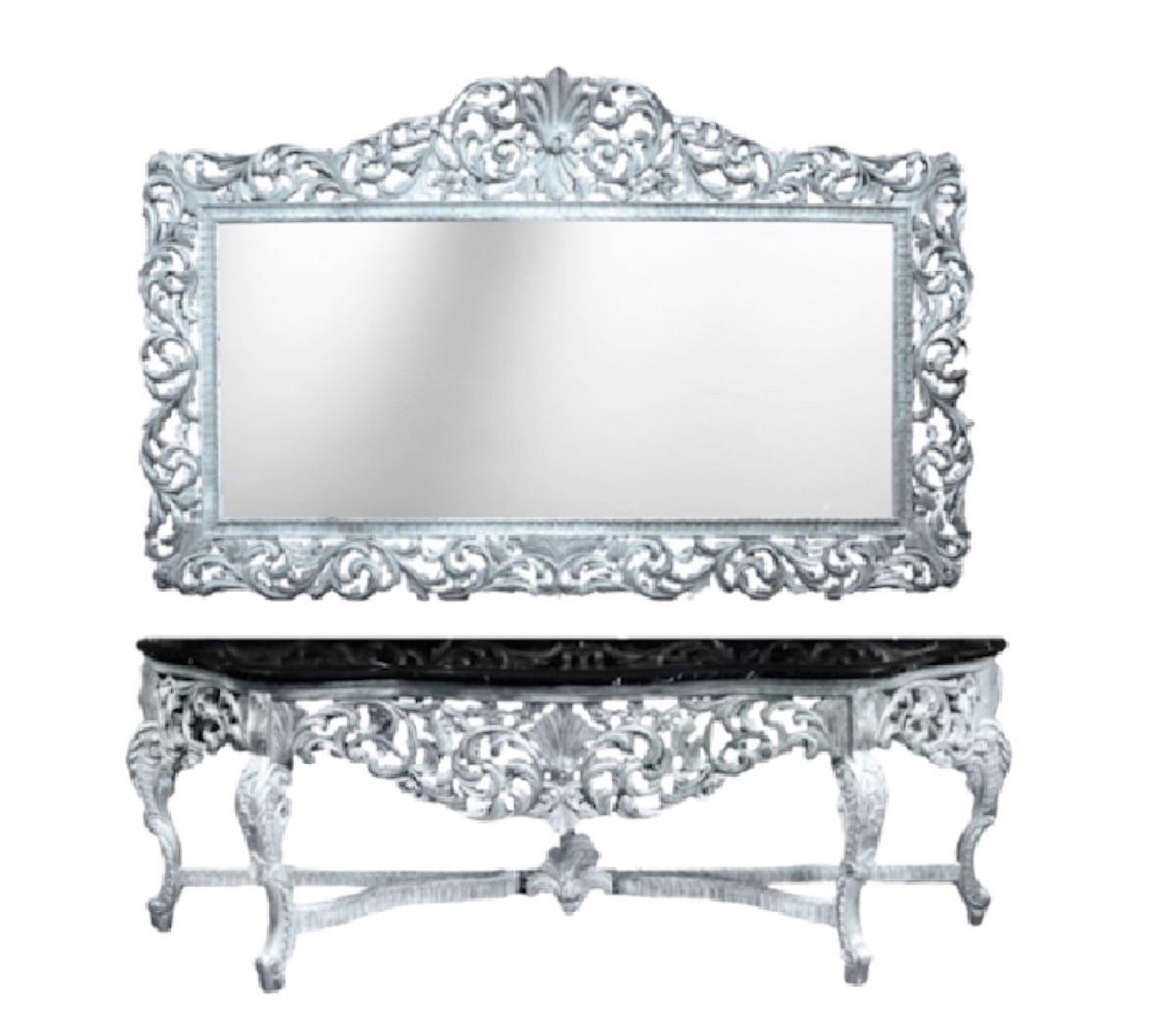 歐洲櫸木, 鏡子, 大理石, 金箔贴漆。