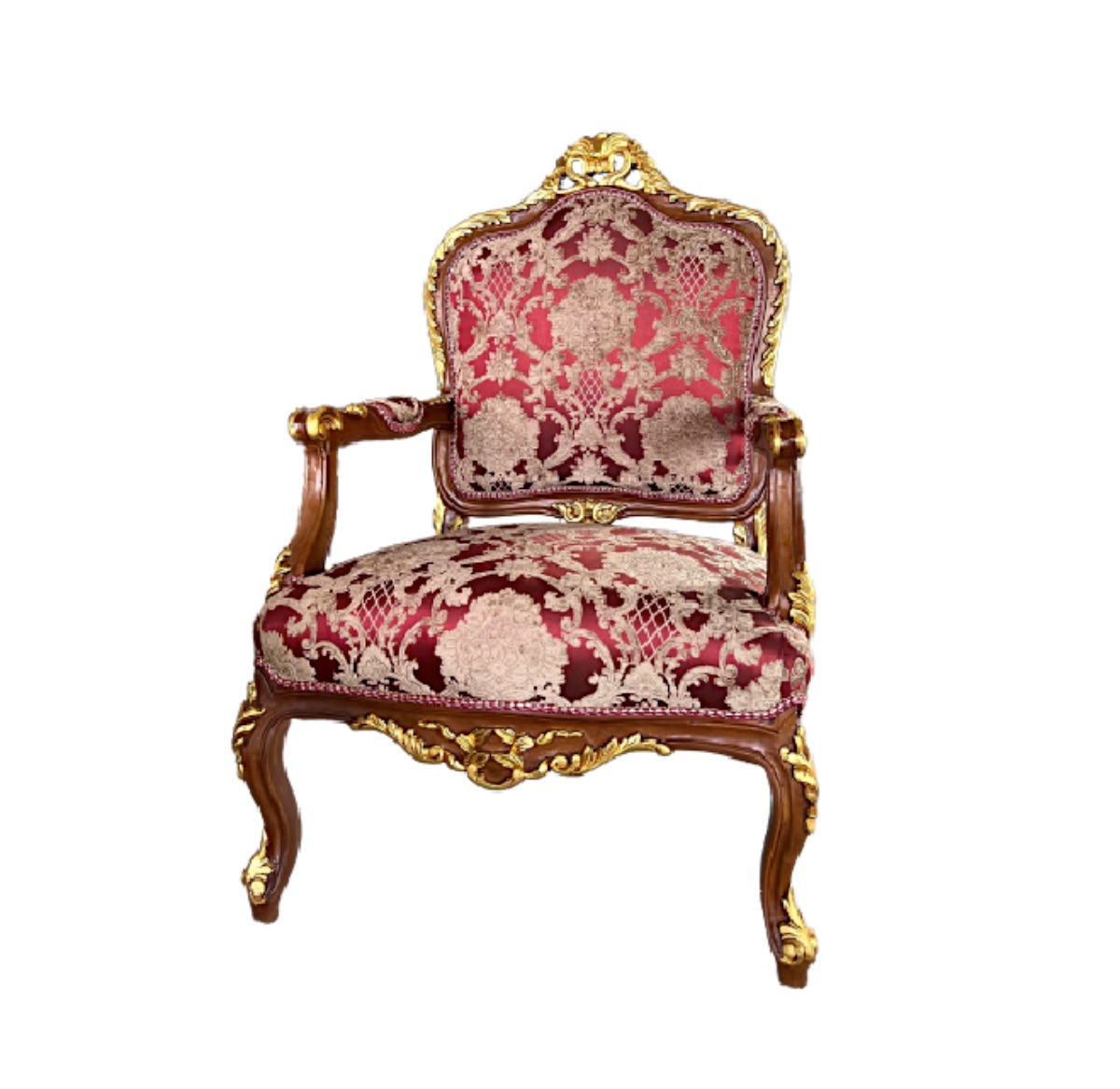 华丽的巴洛克风格沙发套装为 2-1-1-1-1。该款式是法国路易十六皇家沙发套装的复制品。适合4-6人的家庭。全套由实心山毛榉木、来自意大利的小大理石片手工雕刻而成,部分镀金 14K 金箔,并采用来自土耳其的丝滑提花织物装饰。工艺全部由熟练的队友手工完成。 它非常坚固且坐着舒适。配有一张 2 座沙发、4 张扶手椅和 1 张大理石咖啡桌。目前我们只有这套沙发。