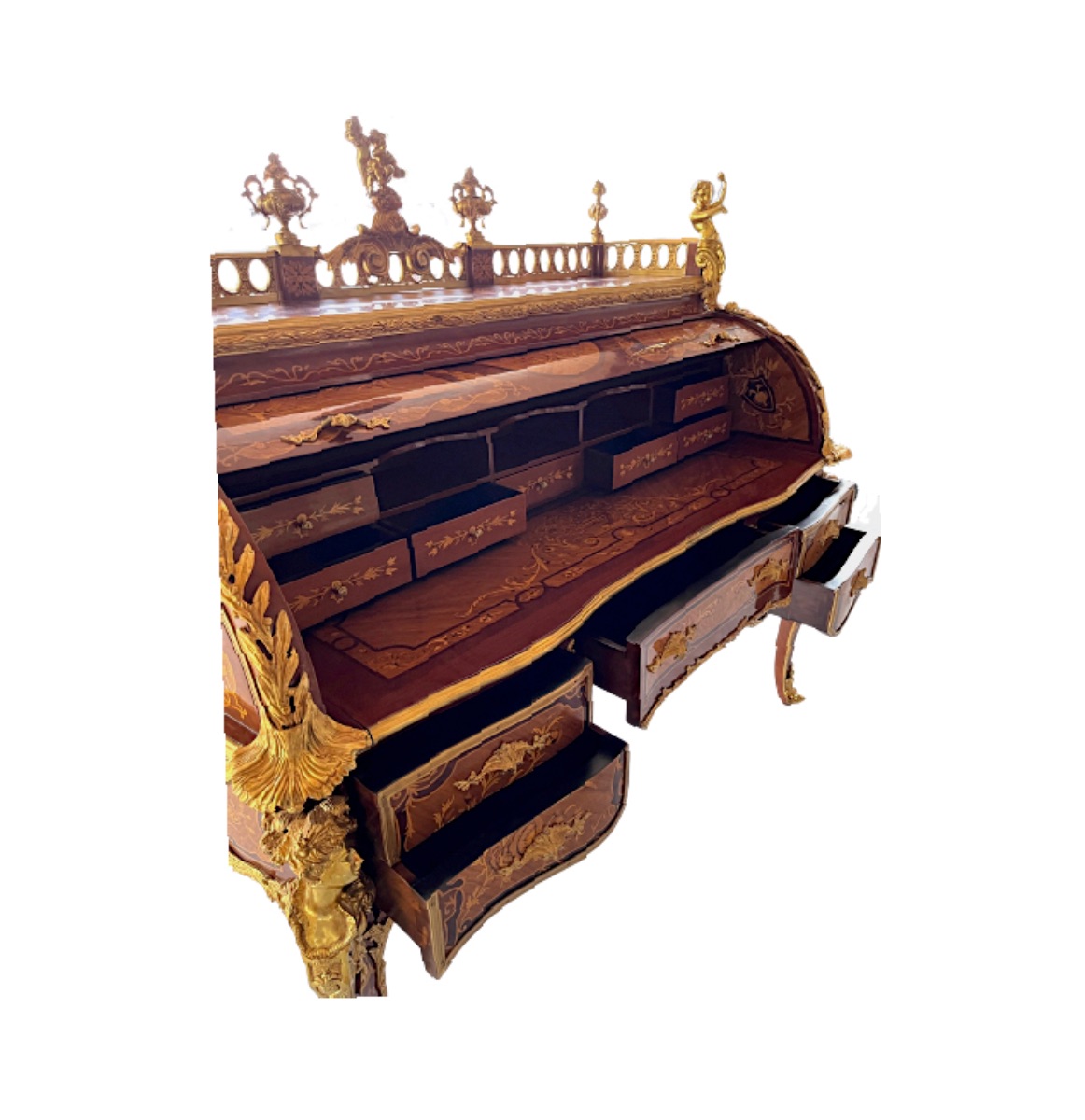 自豪地推出我们最负盛名的手工制作的古董风格秘书桌,配有整理架。 这是欧洲古董风格的新再现。上部精致的收纳盒镶嵌有 7 个抽屉,并配有弧形木盖盒。 顶架的设计看起来就像一个带有青铜角饰的帝国花园。下层桌子上镶嵌着 5 个抽屉,边缘四周镶嵌着青铜装饰品。 此外,还有美丽的古代木纹图案。 绝对是一件高贵的宝物!
