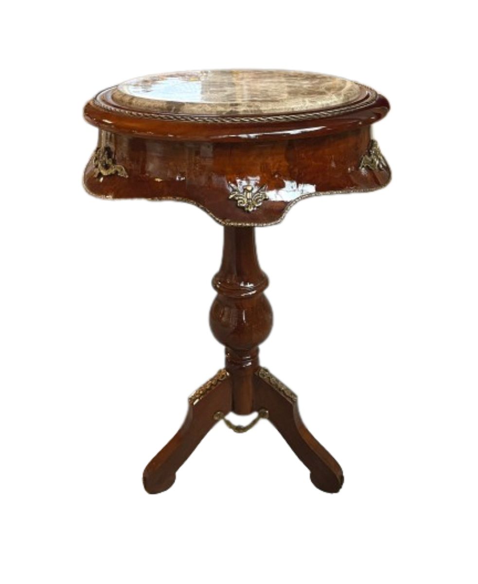 法式仿古风格边桌复制品,顶部有大理石板。 适合茶几或咖啡桌。采用实心山毛榉木手工制作,表面闪亮,配有黄铜装饰品和米色大理石板。 它配有 2 种木质形状和 3 种颜色的大理石板。请注明您喜欢的大理石板颜色。 每件作品都是独一无二的。 它非常适合厨房、书房或商务场合。